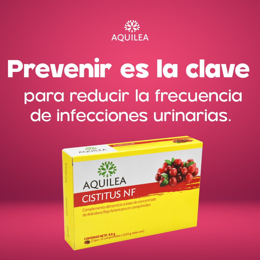 Aquilea Cistitus es un complemento alimenticio formulado con extracto de arándano rojo americano, conocido por su alto contenido en proantocianidinas (PACs), que contribuyen al bienestar del tracto urinario.